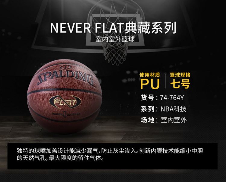 斯伯丁籃球74-764Y NEVER FLAT系列典藏室內(nèi)室外PU皮籃球