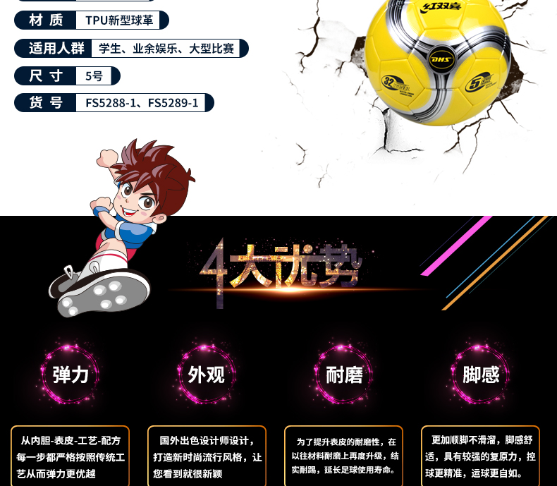 紅雙喜足球FS5288-1 訓練比賽用品牌新型革材質(zhì)耐磨5號成人足球FS5288-1