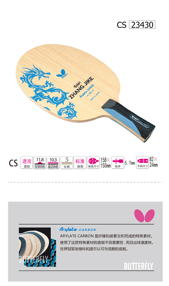 Betterfly蝴蝶23430 張繼科底板(ZHANG JIKE)23430 最新中國龍