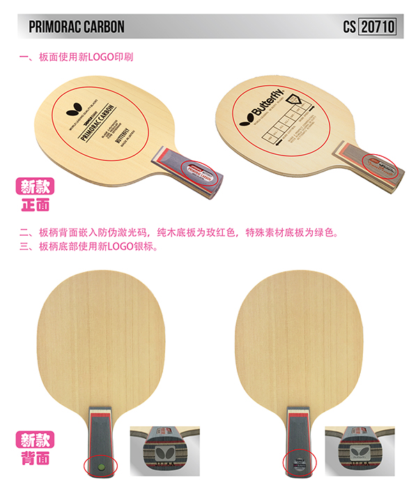Butterfly蝴蝶20710 普碳底板直拍普里莫拉茨碳(Butterfly Primorac Carbon CS)