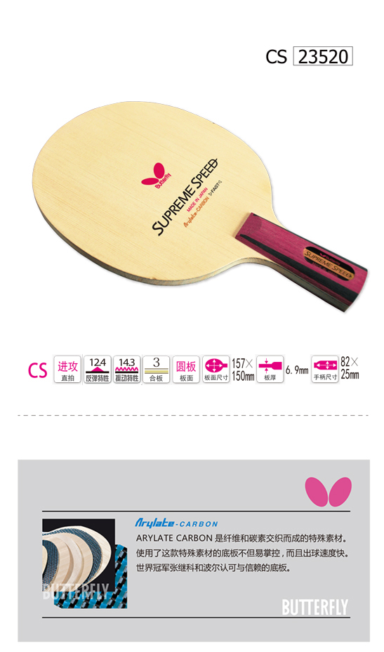 Butterfly蝴蝶23520 SUPREME SPEED 極速乒乓底板(蝴蝶中國10周年紀(jì)念款)