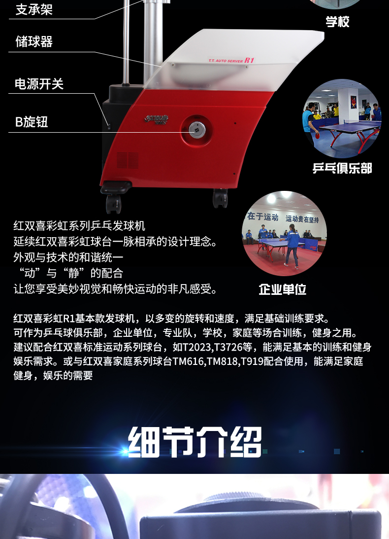 紅雙喜(DHS) R2自編程落地式專業(yè)乒乓球發(fā)球機