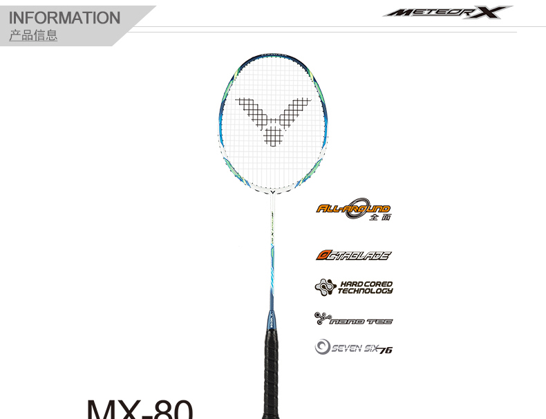 VICTOR威克多羽毛球拍單拍碳纖維專業(yè)比賽耐打穩(wěn)定精準(zhǔn)進(jìn)攻MX-80
