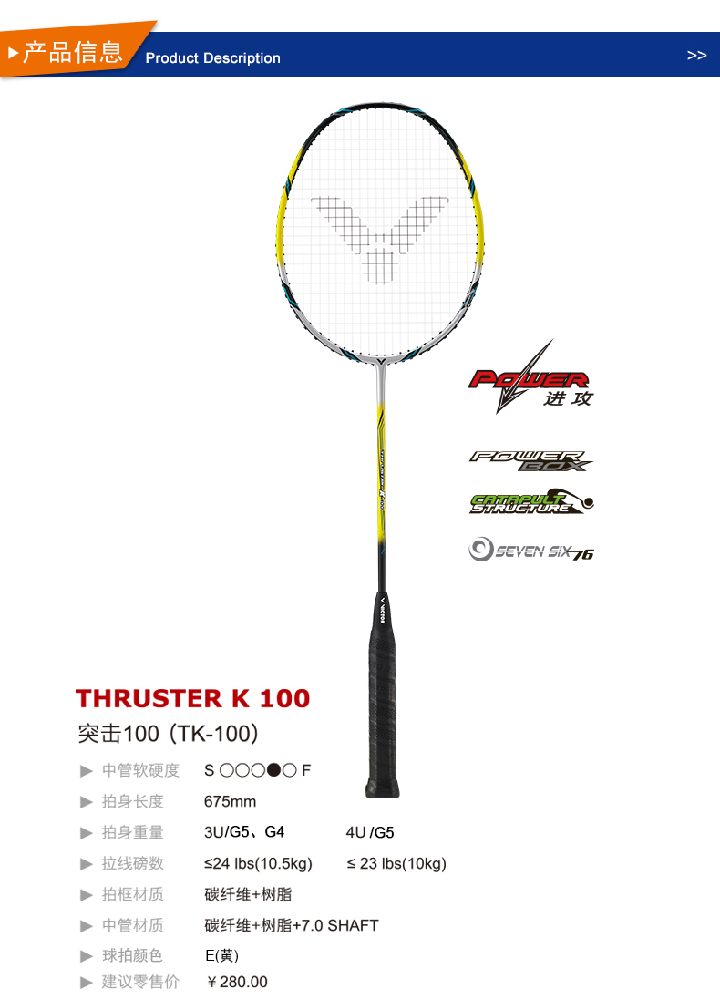 VICTOR威克多羽毛球拍單拍全碳素業(yè)余初級(jí)訓(xùn)練穩(wěn)定進(jìn)攻類TK-100