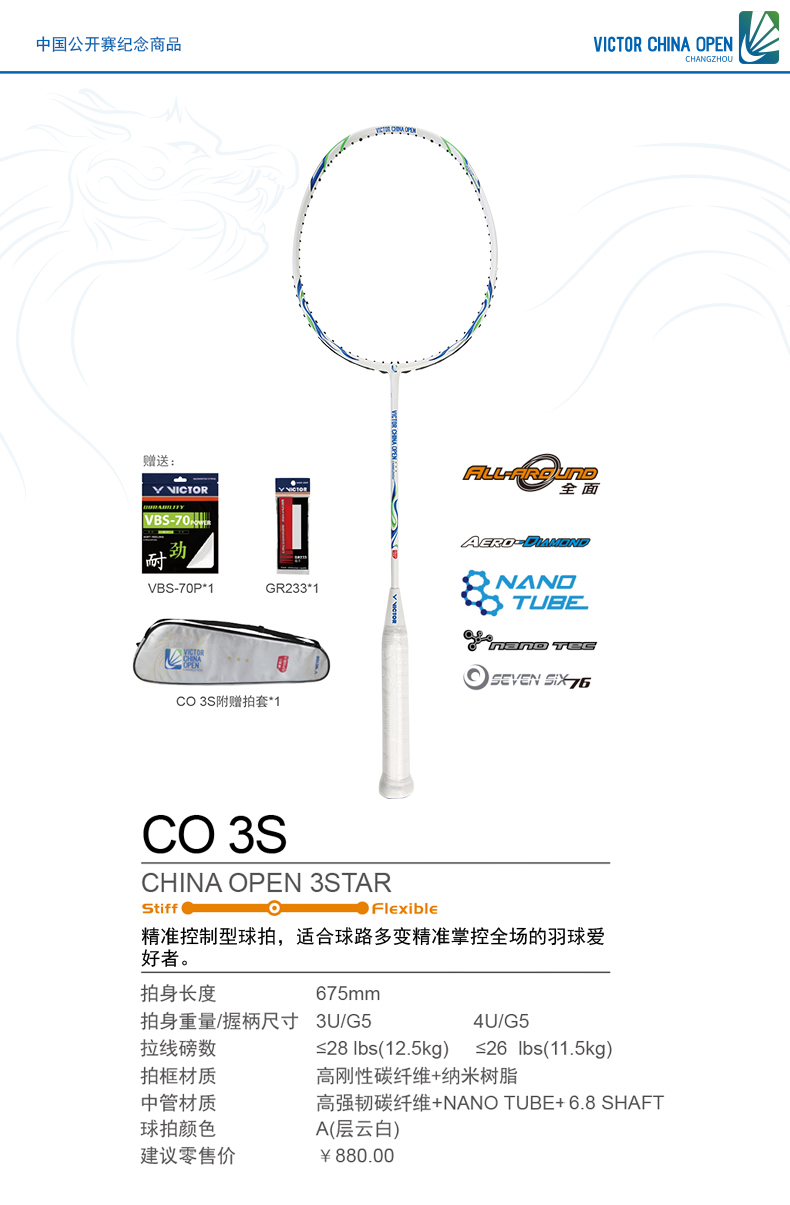 VICTOR威克多羽毛球拍單拍碳纖維業(yè)余中高級穩(wěn)定耐打精準(zhǔn)CO3S