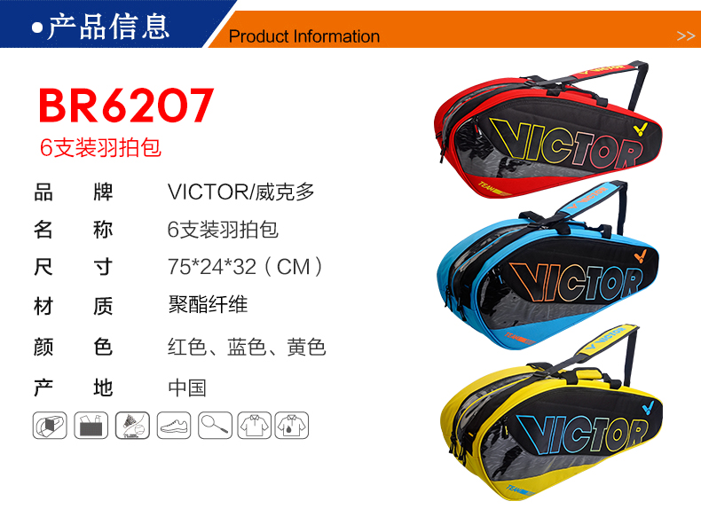 威克多勝利羽毛球包單肩6支裝羽毛球拍包球袋